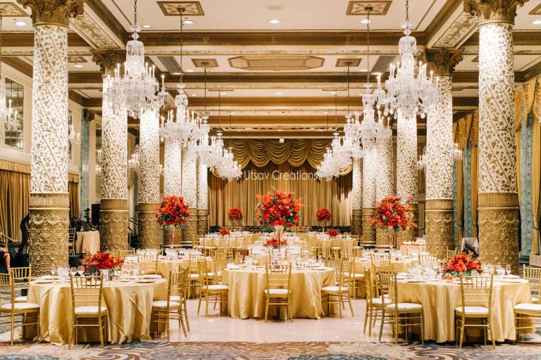 Reception Décor is all about creating a setting that feels personal, luxurious & unforgettable. Each design begins with the bride’s vision. From color palettes to style preferences, Utsav Creations Team brings your vision to life with dazzling décor, creative ideas, and meticulous attention to detail. We handle everything from linens and special lighting to CUSTOM FLORAL ARRANGEMENTS, backdrops, and custom favors.